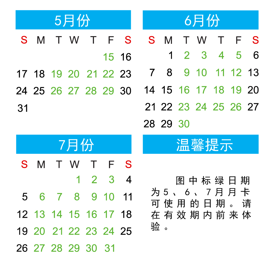 月卡可使用日期请参照下图标绿日期。